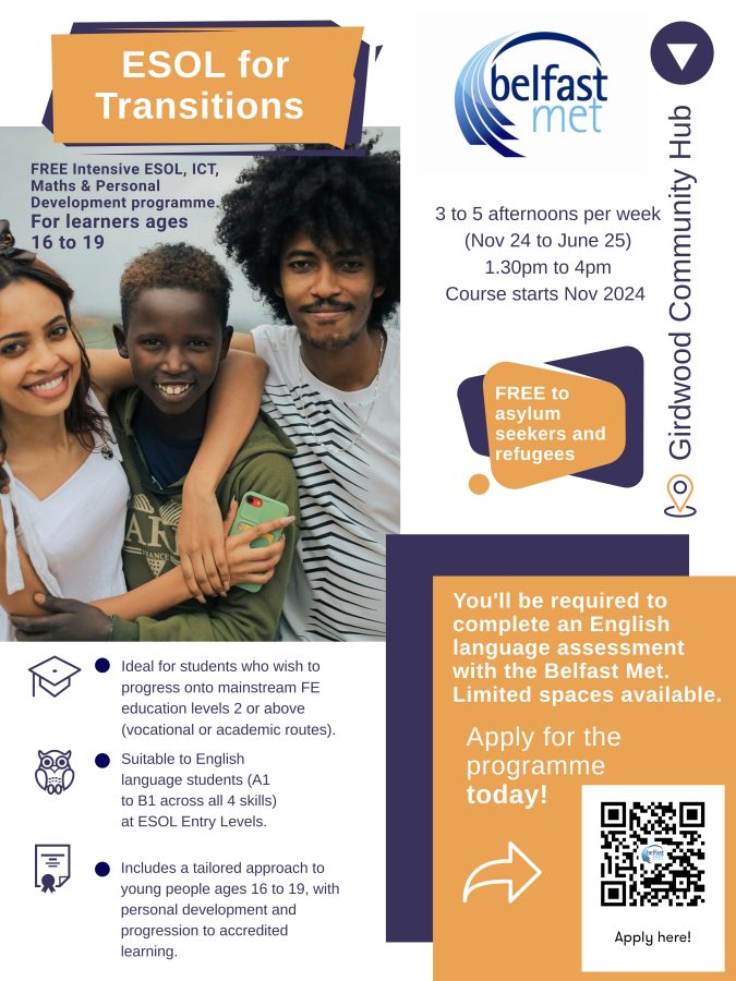 The Belfast Met is delighted to open applications for the ESOL for Transitions programme