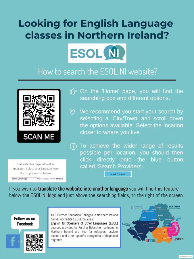 You can find the new ‘ESOL NI translated searching instructions’ PDF poster in 7 different languages below: