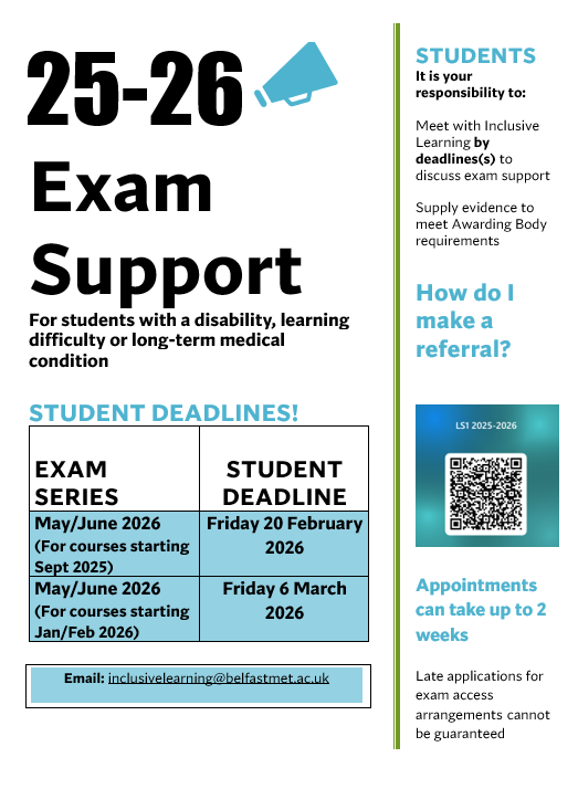 Do you study at Belfast Met require support in exams due to a learning difficulty, disability or long-term medical condition?