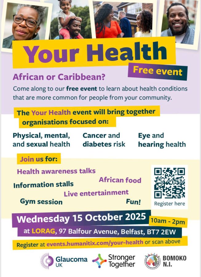 Join us for a free health event in Belfast on 15 October 2025, from 10am – 2pm, for African and Caribbean communities. The day will highlight health concerns that matter to you and your family. Expect health talks, African food and plenty of opportunities to connect.