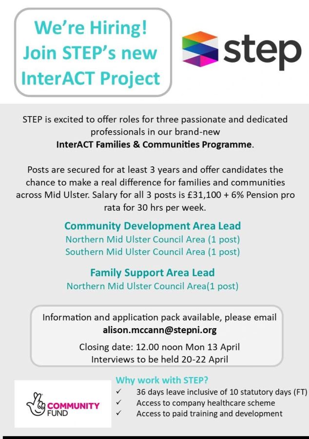 STEP is looking for 3 workers for our new InterACT project, funded by The National Lottery Community Fund.